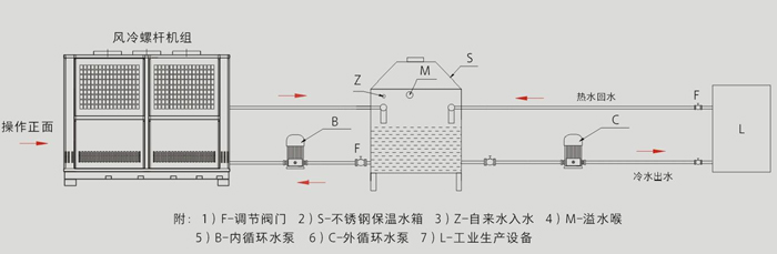 應用環(huán)境: 主要為模具、光纖光纜水槽、工業(yè)爐、制藥機械、點焊機等行業(yè)提供循環(huán)冷卻水,能夠有效地控制和調節(jié)冷卻水溫度(3℃~35℃),讓機械設備產(chǎn)生熱量的部分在運轉過程中能夠保持所需要的恒定溫度冷卻設備產(chǎn)生的高溫。從而大大提高機械設備的使用壽命和工作效率! 一、風冷型冷水循環(huán)機也叫風冷式冷水機組,主要區(qū)別就是冷水循環(huán)機不帶水箱(水箱外置),通過板式換熱器或者殼管式換熱器來給水箱內的水循環(huán)降溫。 產(chǎn)品特點Features: 1、采用國際最先進的渦旋式或活塞式壓縮機,電器及制冷系統(tǒng)原器件全部為世界著名品牌; 2、冷卻水泵及管路系統(tǒng)全部采用不銹鋼材質,確保水質更潔凈,使用壽命更長久、制冷效果更穩(wěn)定; 3、風冷冷凝器全部采用進口風機及大風量低噪音軸流設計,噪音更低、換熱效率更高; 4、風冷系列無需配置冷卻水塔及冷卻水泵,安裝簡單,移動方便,適合生產(chǎn)場地比較緊缺的環(huán)境使用; 5、機組采用進口高精度電子顯示器,內置P.I.D 自動演算功能,啟動延時功能,控溫精度在±0.5℃范圍內,且控制溫度范圍在3℃~40℃之間; 6、為保證使用安全,機組內置漏電保護器、相位保護、過載保護、電流保護;系統(tǒng)安裝了高、低壓保護傳感器,為防止缺水或循環(huán)水系統(tǒng)內部結冰,機組安裝了流量開關和低液位保護裝置。