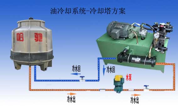 下面的方案就是選用工業(yè)冷卻塔來冷卻油溫,工作流程示意圖請參照以下圖片示例: